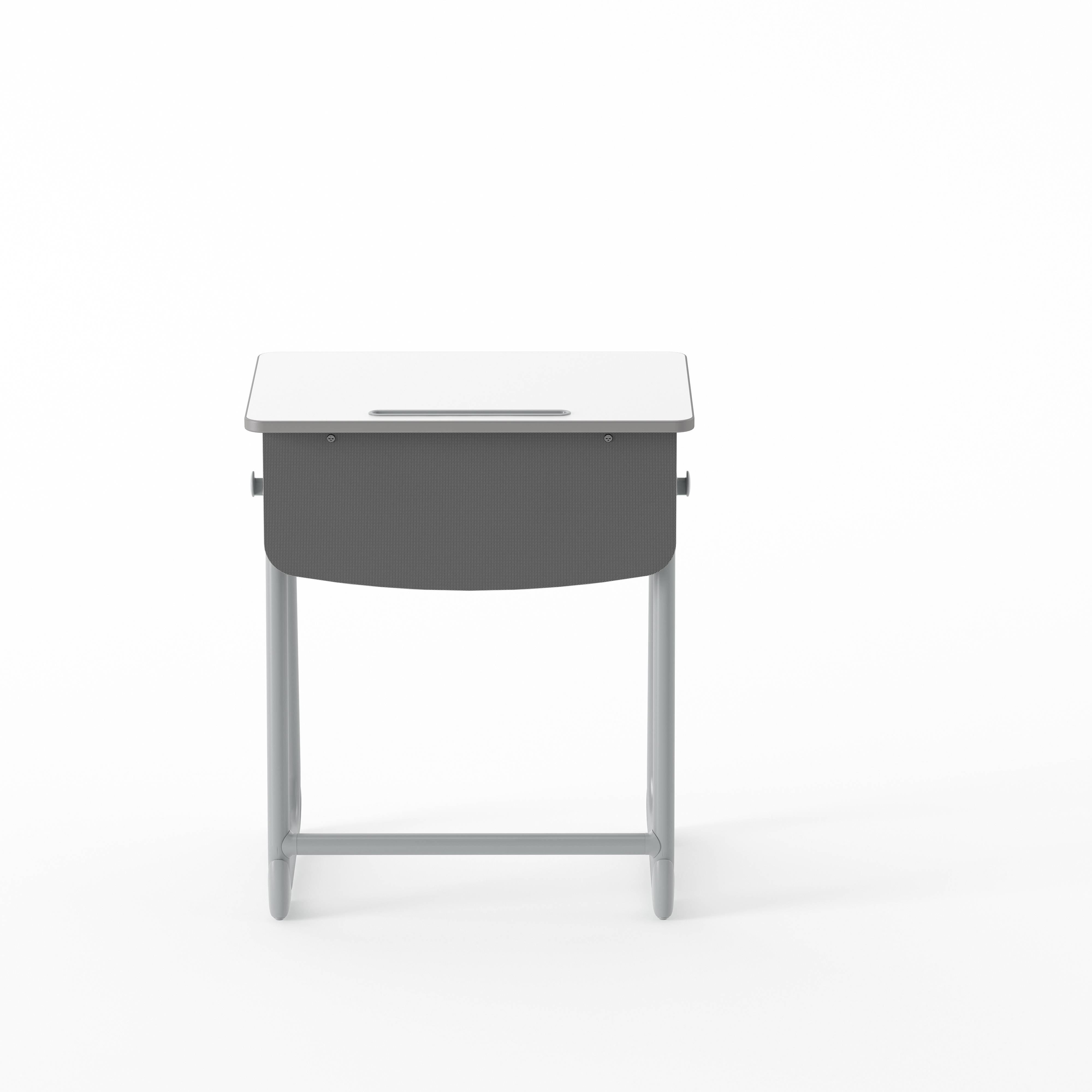 BELL-1 是一款适配多功能学生椅的新式课桌,采用环保工艺和拆装设计,桌面板的封边圆角设计保护学生安全,有效提高学生的专注力,极具现代感的外观,可很好地融入教学空间,提高学校形象。
