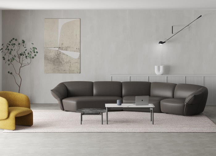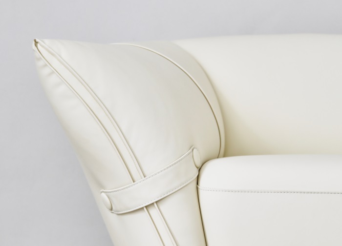 花朵盛开时,花瓣和花蕊会展开,设计师从花朵的外观形象中提炼出花瓣盛开时的姿态,并应用到沙发的设计中。沙发的扶手采用了往外张开的形状,类似于花朵的花瓣展开的姿态,同时扶手上还有滚边点缀,使得整个沙发看起来更加生动有灵性。此外,沙发的扶手还可以作为靠背倾靠,满足人们侧坐时的需求。两侧拉扣的设计将外张的扶手往回收拢,犹如花瓣被花托收拢的形态,使得产品设计更加完整,有生命力。